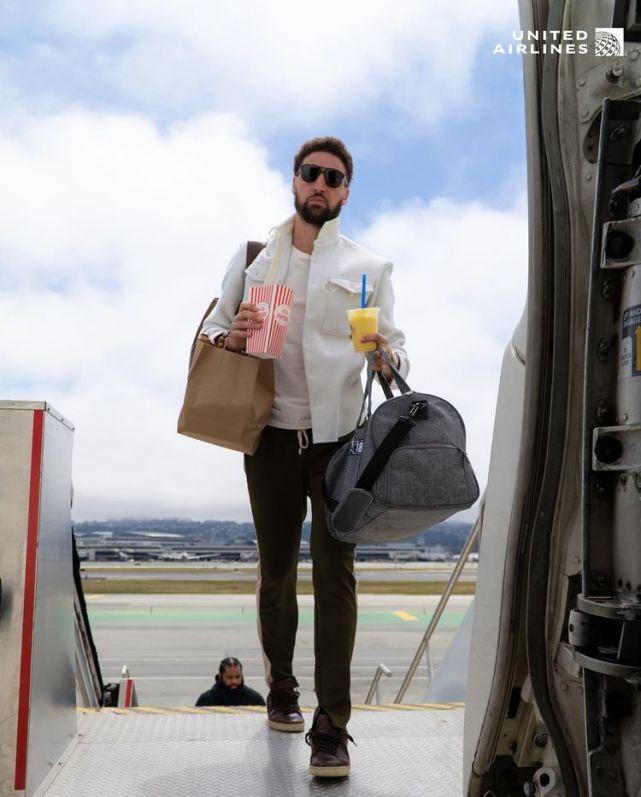勇士飞赴孟菲斯!水花帅气登机爆米花抢镜 球迷留言打气:4-0