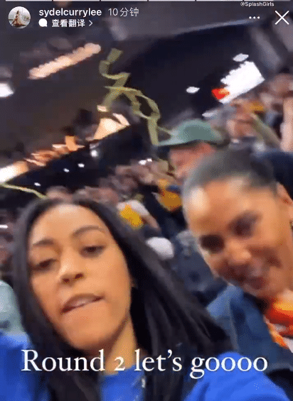 库里的爱人、妈妈和妹妹都在现场,赛后他们也开始狂欢,庆祝勇士晋级第二轮。