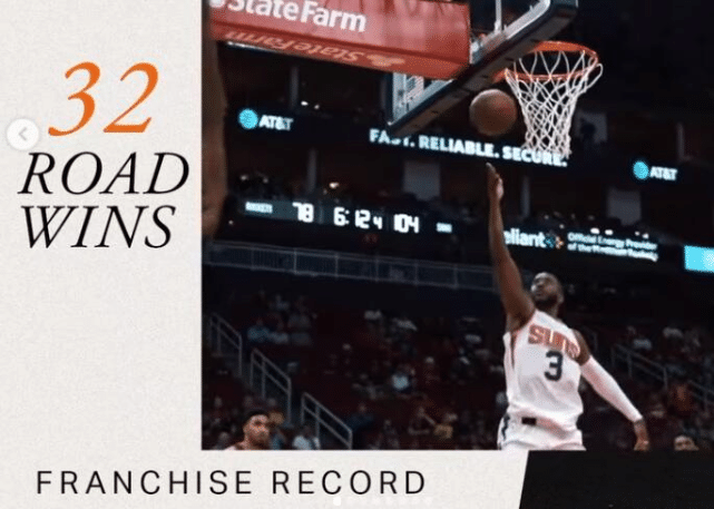 第七,本赛季,太阳获得32场客场胜利,同样创造了队史新纪录!