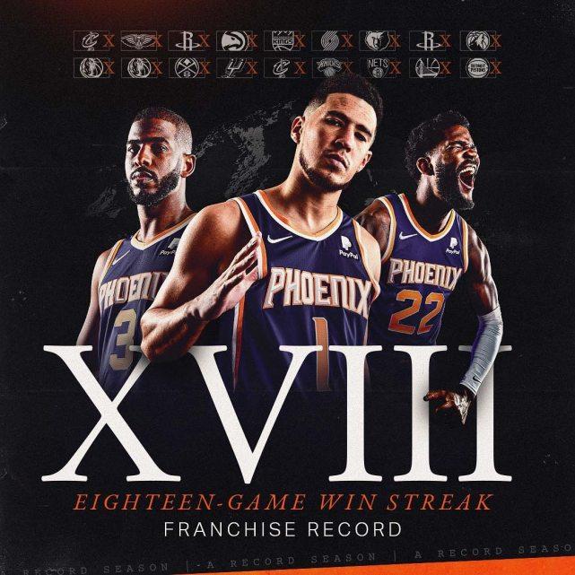 第二,太阳在这个赛季打出过一次18连胜,同样创造了队史新的最长连胜纪录!