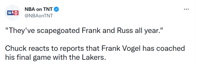 他写道:“重磅新闻:据报道沃格尔被炒鱿鱼了。为什么这新闻不在今年1月1日就被爆出来呢???根本上来说,是因为珍妮-巴斯(湖人老板)要惩罚詹姆斯,因为他去年推动交易引进了威少。就像在说:‘自食其果,自作自受(You made your bed, now lie in it the rest of the season.)’湖人球员早就不听沃格尔的话了。”