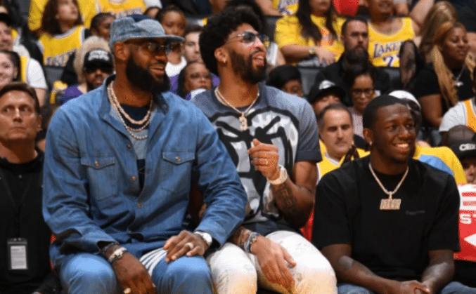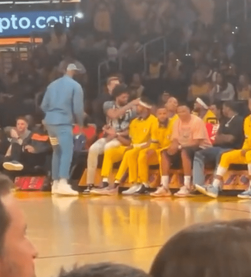 湖人早已无缘附加赛和季后赛,詹姆斯、浓眉和威少都没有出战最后的三场比赛,上一场湖人在主场击败雷霆从而终结扎心的8连败,期间詹姆斯无视队友一幕曝光,贝兹莫尔为老詹让座却想要击掌遭无视,无奈自己击掌。
