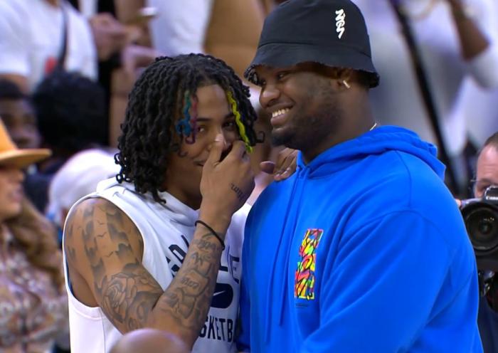 锡安和莫兰特捂嘴热聊!19年状元榜眼同框出镜