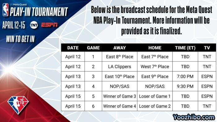 附加赛第一场4月13日东部第八VS东部第七 时间待定