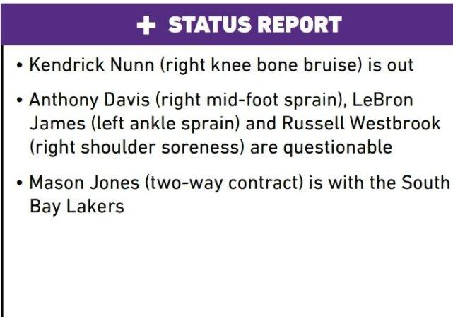 湖人官宣伤情!三巨头全部出战成疑 名记:詹姆斯可能继续缺阵