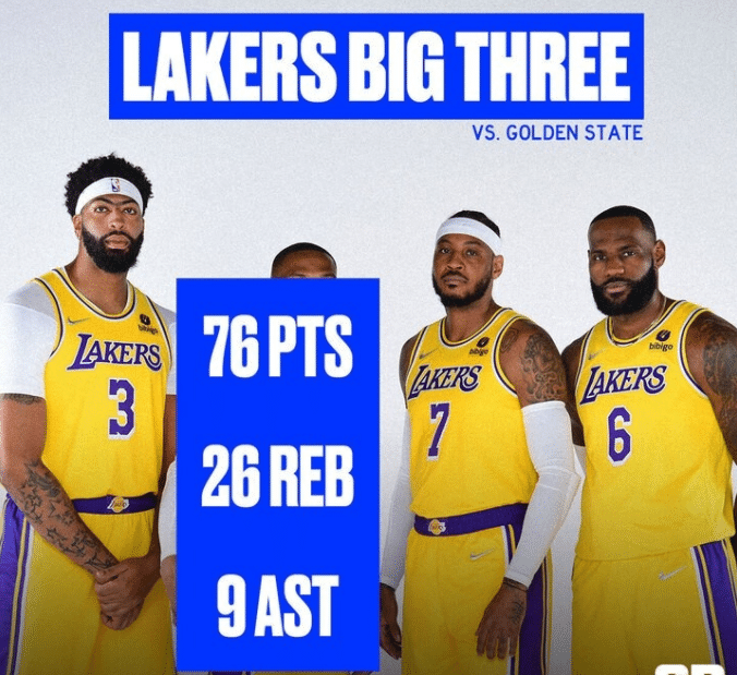 同时美媒调侃威少,晒出湖人三巨头数据的时候直接挡住了威少,称三巨头詹姆斯、浓眉哥、安东尼合砍76分26篮板9助攻,遗憾落败。当然我们也都知道湖人的三巨头是詹眉+威少,不过此役威少表现糟糕,直接被安东尼顶替了,同时威少还被直接遮住。