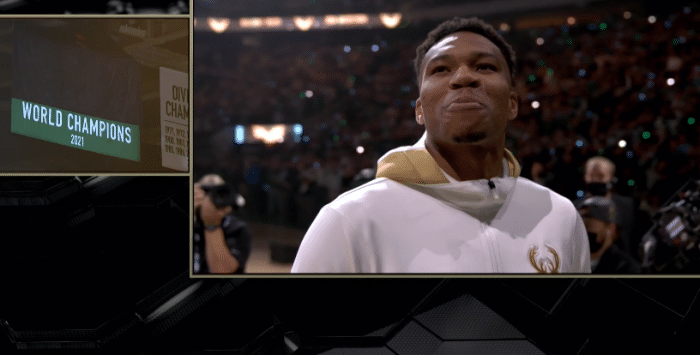 雄鹿全队领取总冠军戒指!字母哥亮相全场高呼MVP,升旗时满脸喜悦