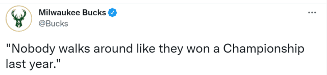 兴奋归兴奋,雄鹿新赛季的心态依然很不错。新援格雷森-阿伦在采访中说道:“这里没有球员给人感觉是他们上赛季拿到一个总冠军,他们会在揭幕战的仪式上得到嘉奖,但平日里,没有人讨论MVP、总冠军之类的内容。”新赛季,外界普遍看好篮网和湖人竞争总冠军,而作为上赛季的总冠军,雄鹿也会力争卫冕,捍卫他们的荣誉。