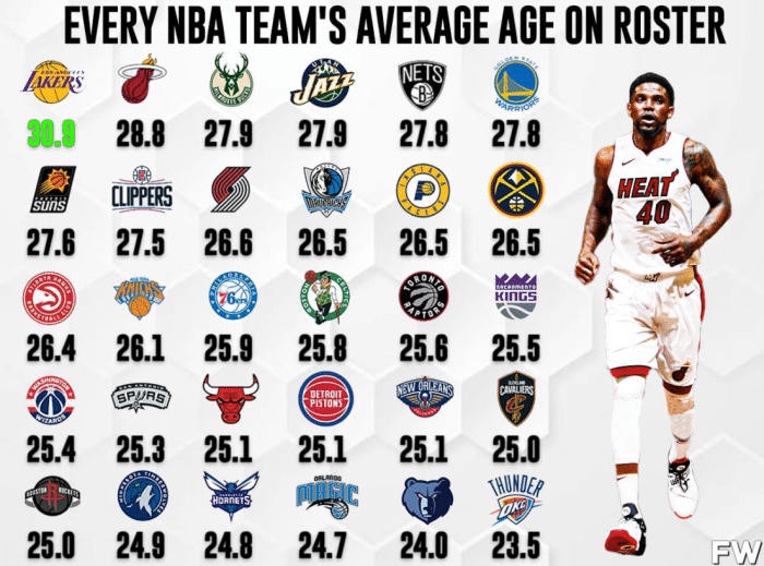30队平均年龄出炉!湖人30.9岁高居首位!前七都是争冠大热