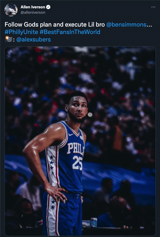 艾弗森劝告西蒙斯!76人名宿公开发声:听从上帝的指示去执行吧