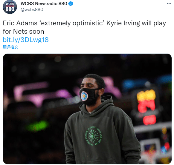 谈到欧文因拒绝接种而被篮网禁赛的话题,EricAdams告诉《纽约邮报》:我认为这会自行解决的,我相信我们会找到一种安全的方法。