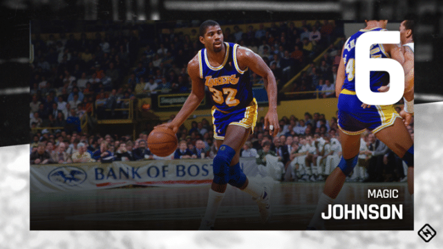 标志性巅峰:1980年,作为一名新秀顶替受伤的贾巴尔打中锋,42分15篮板7助攻帮湖人锁定冠军。