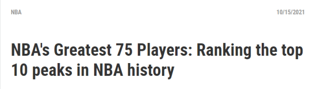 SPORTING NEWS说明了他们的评选过程和标准。他们先是圈定了259位球员的投票范围,并邀请了58位NBA专家和媒体人进行投票,每个投票根据球员的巅峰表现排出自己的前100名。当然,“巅峰”的定义因人而异。最终,SPORTING NEWS根据58人的投票,计算出前75名,列出了这份75大巨星巅峰排名。