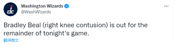 28岁的比尔因伤提前退赛,初步确诊为右膝挫伤,但愿他的伤势无大碍;此前比尔已经为奇才打了三场季前赛,场均上场25.3分钟拿到13分4.3助攻3.7篮板,投篮命中率33.3%以及三分命中率21.4%,进攻状态糟糕,今日对阵尼克斯,比尔状态复苏,可仅打9分钟就受伤退赛,真是太不幸了。
