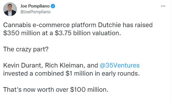 估值37.5亿美元!恭喜杜兰特投资赚翻天,短短4年翻了100倍