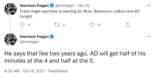 至于浓眉新赛季的使用计划,沃格尔也进行解释。他预计浓眉的使用和两年前一样,就是50%的时间放在四号位,50%的时间放在五号位 。