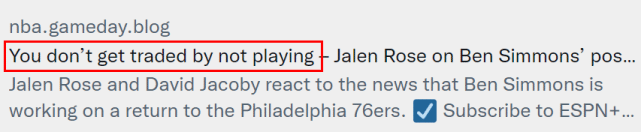 就像罗斯说的那样,你不上场打比赛,就很难被交易走。其他球队需要通过比赛了解你的最新状况,如果西蒙斯表现够好,展现出自己休赛期训练的成果,就更有利于他的交易早日达成。从这个角度来看,西蒙斯和经纪人里奇-保罗决定重返费城,应该只是为了更快离开。