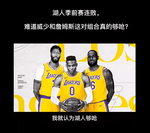 威少两战19中4+15失误,沃格尔、詹姆斯等人都在力挺他,威少本人也表示自己之前几年打季前赛状态也都不好,所以不担心,但杨毅在自己的电台节目上却对湖人的新赛季非常不看好,他认为问题主要在威少身上,认为他和詹姆斯的联手不会成功,湖人也不可能新赛季夺冠!