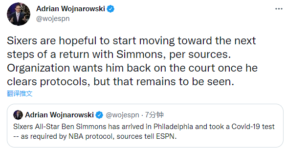西蒙斯已抵达费城!双方谈妥接受检测,名记:76人希望他重返球场