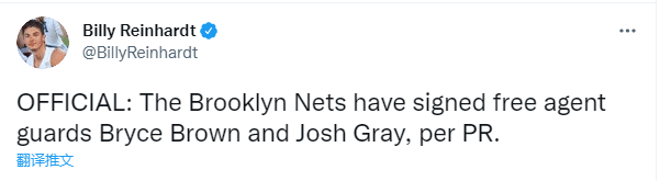除了欧文的情况,篮网还在今天正式裁掉埃德蒙-萨姆纳,并且签下自由球员布莱斯-布朗和约什-格雷,这下篮网凑齐了季前赛20人大名单,不过布朗和格雷随时可能被裁,之后他们将为篮网发展联盟的附属球队出战,连签两名后卫为欧文缺席做准备吗?