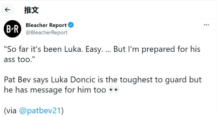 来源:24直播网09-25 10:1224直播网9月25日讯,森林狼球员贝弗利今天接受了线上采访,当被问到谁是NBA现役最难防守的球员时,贝弗利回答:东契奇,他是目前最难防守的,这是一个很容易的问题,不过我也准备好在新赛季踢他的屁股了。