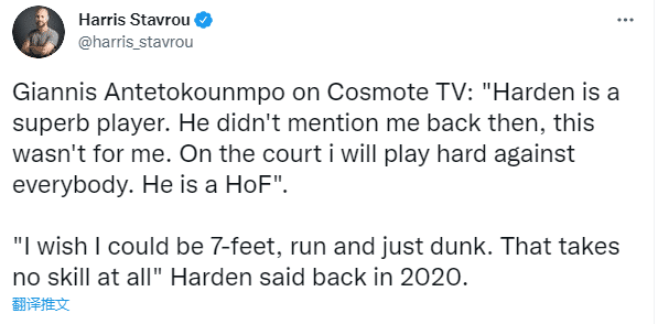 美媒认为哈登是在嘲讽字母哥没技术,如今字母哥回应:首先哈登从未提起我的名字,我曾看过那个视频,我认为他的意思是如果他有7英尺,再加上它本身的投射能力,比赛会对他来说更容易。我觉得是媒体在把话题往我身上引,哈登是名出色的球员,当我在场上对上他时,我必须打得很努力。他是名名人堂级别的球员,我对他十分尊重。