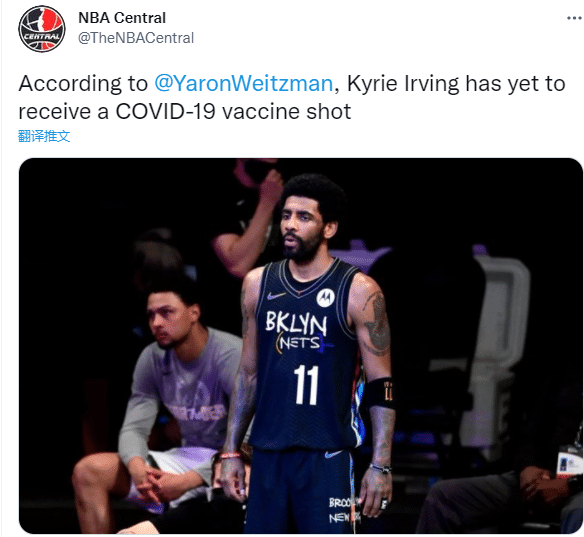 按照每支球队20名球员来算,联盟还剩大概60名球员还未接种疫苗,其中篮网球星凯里-欧文和勇士球星维金斯都拒绝接种疫苗,他们都可能因此缺席主场的比赛;目前篮网和欧文发言人都拒绝对欧文的情况发表评论,最近一段时间,欧文陷入“篮网交易他就退役”的言论之中,现在又因拒绝接种疫苗引争议。