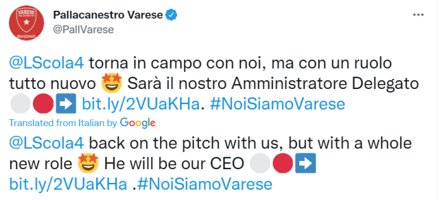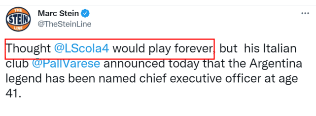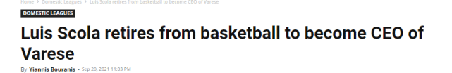 来源:24直播网09-21 09:5824直播网9月21日讯 ,据美媒报道,41岁的路易斯-斯科拉正式退役,他将担任意甲篮球俱乐部瓦雷泽的CEO,目前,瓦雷泽俱乐部已经官方宣布了这一消息。