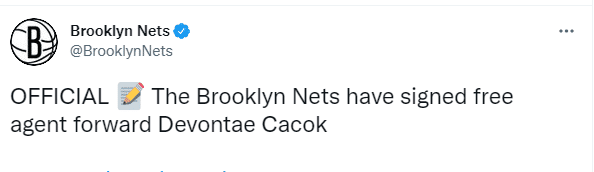 来源:24直播网09-21 09:4924直播网9月21日讯 ,布鲁克林篮网正式官宣,球队已经签约自由球员德文泰-卡考克;篮网官方晒出卡考克签约的画面,卡考克一脸笑容十分开心,不过卡考克和篮网只是签下一份训练营合同,他将在训练营中争夺双向合同的席位。