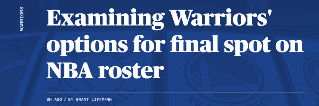 来源:24直播网09-18 15:5924直播网讯 北京时间9月18日,据NBC体育报道,勇士常规阵容的最后一席仍未敲定,而且竞争非常激烈。文中提到了7名球员的名字,他们都有可能搭上这趟末班车。