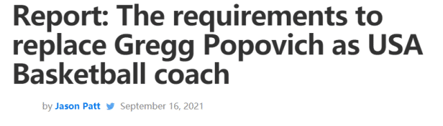 希尔告知NBA记者斯皮尔斯,美国男篮计划在2021-22赛季开始前,也就是一个月内决定新主教练的人选。他们的选择范围很大,其中包括波波维奇在东京奥运会的助理教练。这一次东京奥运会,波波维奇的助教包括勇士主帅科尔、步行者助教皮尔斯以及维拉诺瓦大学主帅莱特。