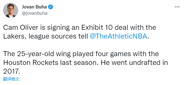 卡梅伦-奥利弗是一名运动健将,身高6尺8寸,在今年夏季联赛的,他为勇士打了5 场比赛,场均得到 7.2 分(51.9% 的命中率)和 6 个篮板。Exhibit10是一份训练营合同,可以转化为双向合同,若被湖人裁掉,他可以获得5万美元的薪水;湖人队还用Exhibit10签下了 麦克-麦克朗 和昌迪-布朗。