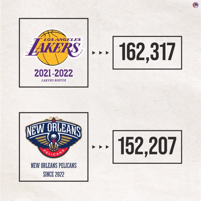 鹈鹕队史19年总得分是152207分,比湖人21-22赛季所有球员总得分少了10110分;当年黄蜂在2002年搬到新奥尔良,在13年更名为新奥尔良鹈鹕队,此前黄蜂队的历史都属于现在夏洛特黄蜂;鹈鹕队史19年7次打进季后赛,但季后赛总是提前出局,因此浓眉申请离队,浓眉走后鹈鹕已经连续两年无缘季后赛。