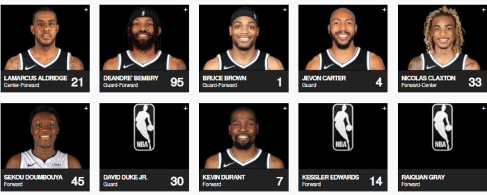 篮网七大新援的球衣号码——米尔萨普4号、米尔斯8号、詹姆斯-约翰逊16号、夏普20号、卡梅隆-托马斯24号、本布里95号和敦布亚45号。