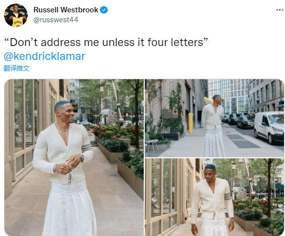 威少艺术照引热议!白裙子黑皮靴+新发型抢镜,湖人新援:与众不同