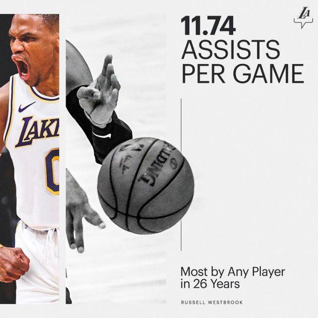 26年来最高!湖人官方晒威少助攻数据,沃帅:再不用害怕和他交手