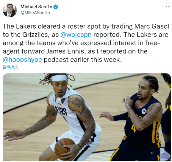 大交易达成之后,马克-加索尔、王哲林和灰熊三个关键词冲上推特热搜;名记沃纳罗斯基后续跟进报道,灰熊将会裁掉小加索尔,从而能让小加继续留在西班牙陪伴家人,之后湖人官宣交易达成。