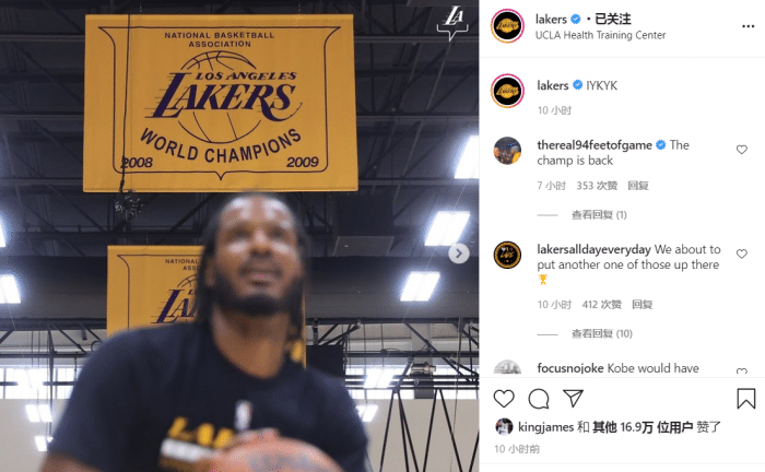 爷青回!湖人晒阿里扎训练与09年冠军旗帜!詹姆斯霍华德点赞