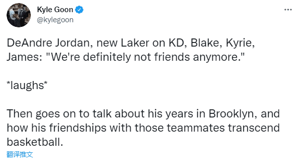 小乔丹回应被篮网交易:我想这只是双方都想找到对我们双方都有利的东西。我觉得他们给了我作为一名老将的尊重;小乔丹还调侃和杜兰特、哈登、欧文、格里芬等篮网球员不再是朋友了,之后小乔丹哈哈大笑,又接着说:我们是兄弟,这已经超越了篮球,所以我们是否在一个队打球并不会影响我们的关系。