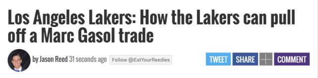 如果小加索尔没打算退役,lakeshowlife认为湖人最可行的交易方案是用他去换回一个非保障合同,这个做法有点像当初湖人送走麦基的方式。