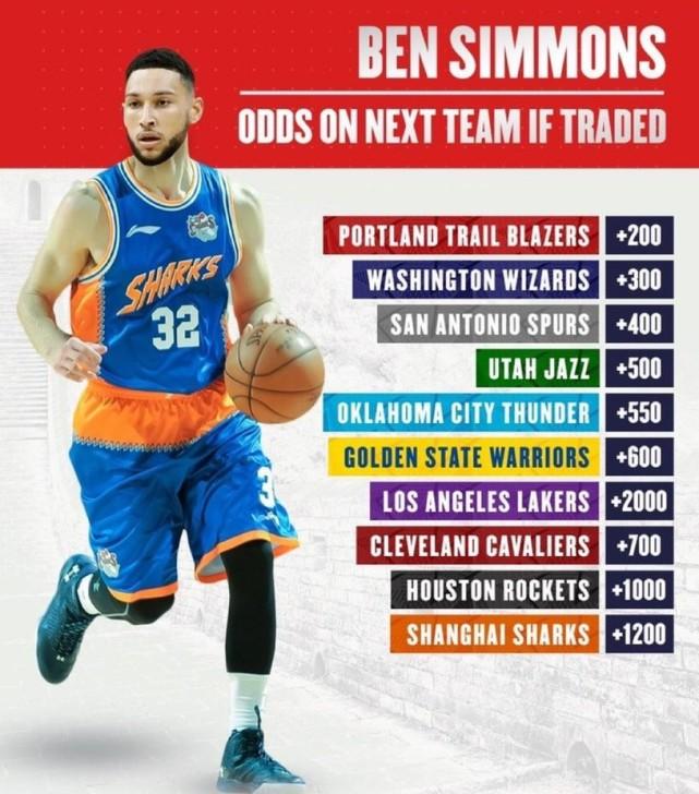 决裂!西蒙斯表态不再为76人打球,下家赔率出炉:上海大鲨鱼在列