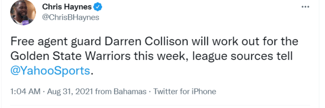科里森本周试训勇士!曾拒绝湖人快船,美记:到2053年他还在犹豫