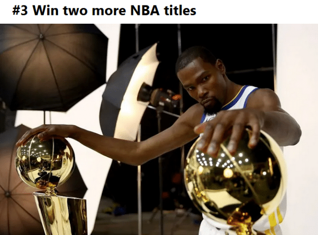 要想列入GOAT的讨论,杜兰特的冠军数量还不够,美媒认为他至少还得再拿两个总冠军。如果他能将总冠军数量增加至四个,他的GOAT履历会有明显提升。毕竟,进入类似的讨论,需要有一些硬核的荣誉,而总冠军数量是最重要的条件之一。