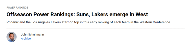 NBA官方休赛期西部实力榜:太阳居首湖人第二,快船第五勇士第七