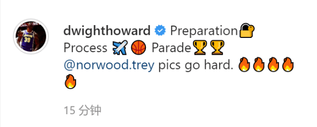 一个月,霍华德曾在社媒上发声:“我想要一次夺冠游行,让我们投入训练吧!”霍华德曾在2020年跟随湖人夺冠,那也是他个人的第一座NBA总冠军。由于疫情的原因,湖人当时没有举办夺冠游行,这也成为霍华德的一大遗憾。新赛季,霍华德希望能帮助湖人再次夺冠,弥补这份遗憾。