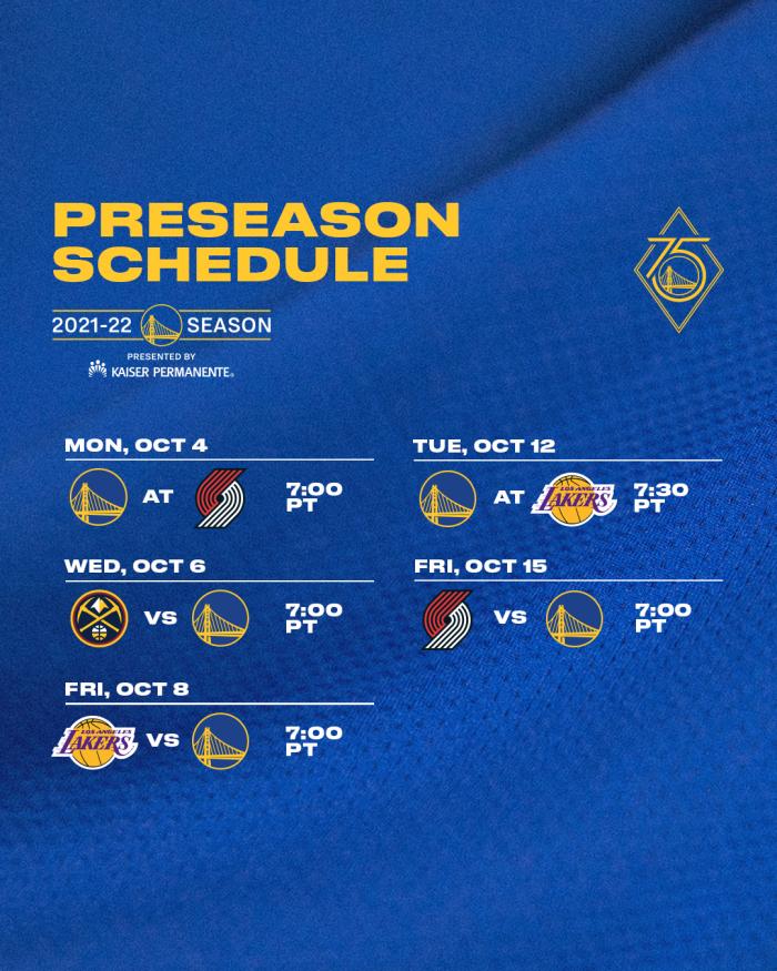 勇士季前赛赛程出炉!首战开拓者连续两战湖人,库里大战6号詹姆斯?