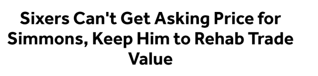 西蒙斯早就被摆上货架,但美媒预测他很难被送走,费城的要价太高了。此前报道称,费城想要一个类似哈登的交易回报,但屡屡被其他球队拒绝。美媒认为,费城只能说服西蒙斯来参加训练营,暂时留队,通过比赛表现来提升交易价值,比如三分和罚球的进步,这样一来他才有机会被换走。如果费城不想贱卖西蒙斯,他们就得有足够的耐心。