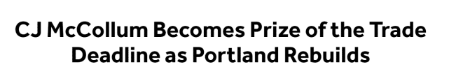 如果利拉德离开波特兰,开拓者肯定要开启重建模式,留下麦科勒姆已经失去意义。美媒预测,就算利拉德被送走,麦科勒姆也不会马上被交易。他们会希望通过提升麦科勒姆的出手次数,来增加他在交易截止日前的价值。上赛季,麦科勒姆场均23.1分4.7助攻,而一旦他成为队内头号核心,数据有望继续提升。