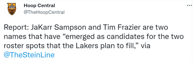 斯坦恩报道称,湖人的两大引援目标是前锋贾卡尔-汤普森和后卫蒂姆-弗雷泽。“汤普森过去两个赛季效力于步行者,他和弗雷泽已经成为湖人计划填补两个阵容名额的人选。”