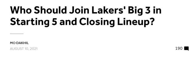 无论首发还是终结阵容,贝兹莫尔都是一个可能会被沃格尔委以重任的新援,因为沃格尔是一个非常重视防守的教练。当然,别忘了霍顿-塔克,湖人多年合同续约这位20岁的小将,也会给他足够的发展空间,如果他的表现够出色,他同样有机会出现在终结阵容中。